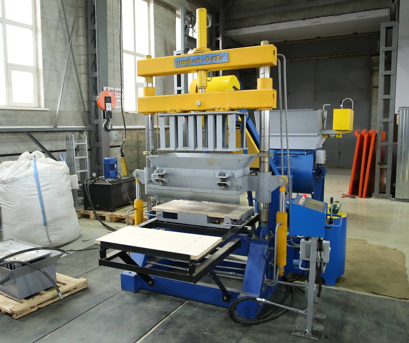 По окончании работы вибропресса необходимо отключить насосную установку, выключить питание электрошкафа и очистить смеситель, загрузчик и пресс от остатков смеси. Примечание: Технологические параметры описанного процесса, а так же оборудования для производства блоков, (порядок подачи компонентов в смеситель, время перемешивания смеси, время вибрации, последовательность включения вибрации и подачи пуансона) зависят от конкретных местных характеристик компонентов и должны подбираться и уточняться опытным путем.